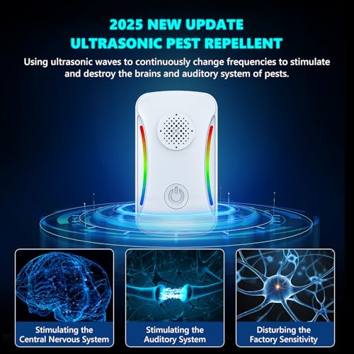 - Upgraded ultrasonic pest control repeller: The mouse repellents ultrasonic plug-in stimulate the brain and auditory system of fleas, rodents, roaches, mice, insects, mosquitoes, ants, rats, bed bugs and other insect pests, thus causing them to run away from your home, Intelligent frequency conversion: Its power is only 3-5W, plug and use; with three different sound wave frequencies, covering a frequency range of 0.010KHz to 0.015KHz, can more effectively deal with various types of pests and keep your family away from pest infestation, Safe for kids and pets: No poison, smell or chemicals, significantly safe and harmless for kids, pregnant women and pets. Protect your family in a healthy and peaful way to repel pests, The effective coverage of each pest control is up to 1600 Sq.ft: We recommend install one for each room because the ultrasound cannot penetrate walls and solid objects. We suggest installing 2 or more devices for areas with serious vermin, Pest repellent is a continuous progress: The typical results can take 1-2 weeks depending on the severity of the pest infestation. Mostly can see the electronic pest-repellent results within 3-4 weeks! Then we can say goodbye to pests and mice! TIPS: To keep the pest from coming back continued use is recommended