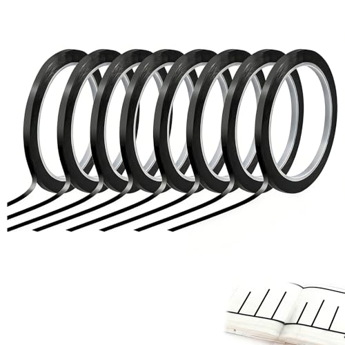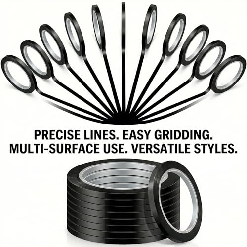 - AMPLE QUANTITY FOR DAILY AND CREATIVE USE: This black tape set includes 8 rolls of grid marking tape, each roll measuring 3mm in width and 66 meters (216 feet) in length, giving you a generous supply for multiple projects and replacements; the abundant quantity ensures that whether you’re working on labeling tasks, decorating surfaces, or organizing supplies in home or office spaces, you’ll have plenty of tape to work with, reducing the need to restock frequently and providing continuous su, DURABLE PET MATERIAL FOR LONG‑LASTING PERFORMANCE: Made from high‑quality, flexible PET material, this black grid tape combines toughness with ease of use, exhibiting resilient performance over time; the durable construction resists tearing when applied or removed, conforming smoothly to a variety of surfaces without cracking under tension and maintaining its structural integrity in repeated use scenarios, making it a dependable choice for both functional and decorative applications that de, STRONG ADHESION FOR SECURE FIXING: Featuring a powerful adhesive backing, this tape sticks firmly to surfaces such as glass, whiteboards, paper, wood, and metal, delivering reliable holding power that won’t easily peel off under normal conditions; the strong adhesion ensures that once applied, your lines, labels, and guides remain intact and clear, supporting organized layouts and precise placements that hold up throughout projects without the frustration of premature detachment or slippage, TOOL‑FREE APPLICATION AND CLEAN REMOVAL: Designed with convenience in mind, this self‑adhesive black grid tape requires no additional tools, glue, or complicated setup—simply peel off the backing and press onto the intended surface; when it’s time to remove or reposition, the tape comes off cleanly without leaving sticky residue behind, allowing you to update, revise, or rearrange your work freely without damaging the underlying material or compromising surface quality., VERSATILE AND CREATIVE MULTI‑PURPOSE TAPE: This grid tape is ideal for a wide range of uses, including marking, differentiating, and creating neat straight lines on surfaces like glass, wood, metal, and whiteboards; it’s also perfect for craft projects such as paper art, painting, scrapbooking, fashion design accents, chalkboard writing borders, and decorative layouts, offering flexibility and aesthetic appeal to satisfy both practical labeling and artistic expression needs in personal, sch