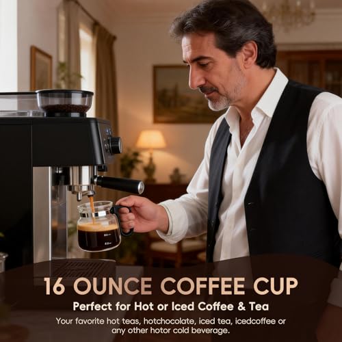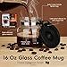 - [Mini Coffee Mug That Looks Like a Coffee Pot] -- This 16 oz glass mug mimics the look of a traditional coffee pot, offering a playful and recognizable design that adds personality to your daily coffee or tea routine., [Spill Proof to Travel with Ease] -- The unique novelty coffee mugs come with a spill proof travel lid for your convenience(approx. 4" tall x 3.75" wide); Whether you're in a rush or chilling at your home, the spill proof lid ensures your drink stays inside the mug and not on you., [Durable Clear Glass Construction] -- Made from high borosilicate glass, the mug is resistant to thermal shock and suitable for hot or cold beverages. The graduated markings on the cup indicate the liquid level, a unique and thoughtful design. Whether you prefer hot or iced drinks, a coffee maker can meet your needs at home, while traveling, or in the office., [Easy to Use and Maintain] -- Holds up to 16 oz (approx. 4" tall x 3.75" wide), fitting 2–3 fingers comfortably in the handle. Hand wash is recommended to preserve clarity and avoid breakage., [Perfect Gift for Coffee Lovers] -- A standout present for men, women, parents, colleagues, or anyone who adores coffee. Fits birthdays, Christmas, housewarmings, Father’s Day, Mother’s Day, and more—practical, fun, and sure to be a favorite in their coffee carafe mug collection.