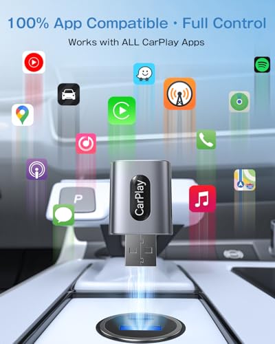 - 【Ultra-Mini Design – 50% Smaller Than Others】Say goodbye to bulky dongle. Our wireless CarPlay adapter is up to 50% smaller than most competitors—so compact, you’ll barely notice it’s even plugged in. Seamlessly upgrade your factory-wired CarPlay to wirefree for navigation, music, Siri, calls & messages—without messy cables., 【Universal Compatibility – Works with 800+ Car Models】This wireless car play adapter for iPhone supports 98% of vehicles with factory-wired Apple CarPlay. Compatible with iPhone 6 and newer, running iOS 10 or later. Just plug in and go—exclusively for wired Apple CarPlay systems. Does not work with Android Auto., 【Fast 3-Step Setup – Reconnects in Seconds】No apps. No hassle. Plug the adapter into your USB port, do a quick Bluetooth handshake, and the device automatically switches to high-speed Wi-Fi for CarPlay data. After this one-time setup, it reconnects in about 5 seconds each time you start the car—even with your phone still in your pocket., 【7A Dual-Band Chip – 40% Faster & Smoother】Powered by the latest flagship - level intelligent IC chip and a high - speed processor, our adapter delivers unparalleled performance. Switch between maps, music, and calls with zero lag., 【Hi-Fi Audio Quality – No Compromise on Sound】Hear your music the way it was meant to be. The CarPlay wireless adapter preserves your car’s original sound fidelity—no static, no drops, just crystal-clear audio every time., 【Lifetime Updates + 2-Year Warranty】Lifetime firmware updates and a 2-year warranty, backed by responsive 24/7 customer support. We’re here to help—quickly and reliably.