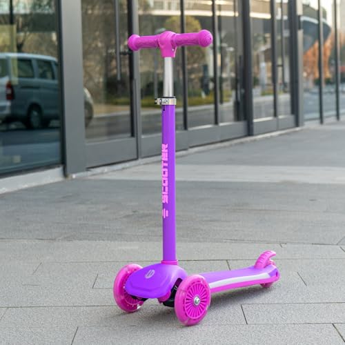 XJD Toddler Scooters for Kids 3-8, 3 Wheel Scooters for Kids 110lbs, LED Light-Up Wheels and Side, 3 Adjustable Height, Lean-to-Steer, Birthday Gift Toy for 3-8 Year Old Girl Boy(Purple)
