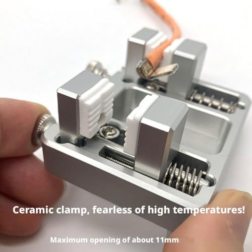 - Thermal Resistance and Durability Aluminum: Crafted from aluminum, this welding fixture can withstand high temperatures, making it an ideal soldering tool for automotive electrical systems and jewelry soldering stations,The double-layer thickened ceramic jaw design prevents wire slippage during soldering, providing a secure hold that is crucial for intricate welding and assembly applications, Adjustable Chin for Versatility: Featuring an adjustable 11mm chin, this Welding Table Clamps Tool provides optimal support for various applications, including circuit board mounting and soldering wire clamp tasks, allowing precise placement of components, Temperature Resistance: Designed to withstand high temperatures, DIY Wire Welding Fixture Tool maintains stability even when the aluminum reaches up to 260.0 °C during repetitive industrial soldering applications, making it ideal for electronics technicians and automotive mechanics, Precision and Performance: Perfect for soldering, PCB-shaped soldering, and prototyping labs, Soldering Wire Clamp delivers reliable technical support for all your welding needs, enhancing efficiency and accuracy in your projects, Enhanced Stability: Heavy-Duty Aluminum Welding Clamps design guarantees vibration resistance and stability of cable lines in PCB manufacturing, ensuring secure installation for critical components such as batteries and automotive electronic systems