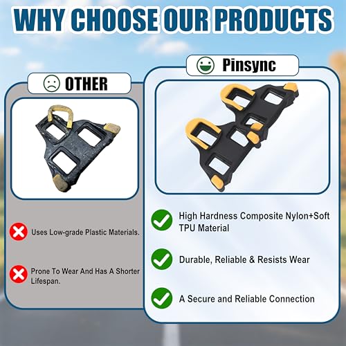Pinsync SPD SL Cleats, 6° Float Cleats Compatible with Shimano SPD-SL Road Pedals & 3-Hole Cycling Shoes, 4PCS Cleats for Indoor Peloton & Outdoor Bicycle Training-Easy Clip in/Out