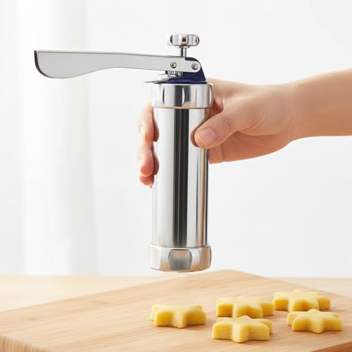 - Consistent Cookie Output: Built from high-grade stainless steel, the cookie press ensures steady and reliable performance, ensuring perfect shapes and sizes in all your baking projects over time, Streamlined Cookie Production: Equipped with a thoughtfully designed cookie press, the Cookie Maker ensures smooth handling and stress-free baking, helping users of all skill levels create tasty treats efficiently for parties, presents, or everyday enjoyment, Versatile Cookie Press: The stainless steel cookie press is designed for making holiday desserts, party snacks, and everyday baking with ease, featuring 20 molds and 4 piping tips to create a variety of shapes and designs, enhancing creativity in your kitchen while ensuring consistent results for festive occasions and casual treats, Effortless Hygiene Management: Designed for practicality, the Cookie Press Kit allows for rapid disassembly and straightforward cleaning, keeping the equipment in pristine state and ensuring it is always prepared for imaginative baking projects, Baking Made Enjoyable: The Cookie Press Maker Kit supports family-oriented baking projects, fostering meaningful connections between parents and children as they craft tasty treats, making it an ideal addition to home kitchens and ensuring every gathering becomes a cheerful occasion