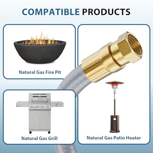 - For NG Appliances: The gas hose fits for Weber Genesis E-435, 38400001 Genesis S-435, Summit E-470, S-670 and 7270001 Summit S-470. And also fits for Weber Spirit S-315, E-310, Spirit II E-310, Genesis S-325S, EX-325S, E-325S, E-335, S-335, Smart SX-325S, Smart EX-335, SX-335, EPX-335, SPX-435. Also ideal for Charbroil dual-fuel grills, patio heater, pizza oven and more, For Modified-LPG Appliances: Suitable for propane appliances that have undergone proper modification, including correct replacement and installation of burner orifices (conversion kit not included), 24 FT NG Hose: Best for long-distance gas supply to appliances. Please measure distance and ensure moving space before buying., Quality and Safety Assurance: Constructed from superior rubber and solid brass, the natural gas hose boasts increased durability and a tight, reliable connection., Product Detail: 24 feet 1/2" ID gas hose (1/2" Male Quick Connect Plug x 1/2" Female Flare), 1/2" quick connector (1/2" Female NPT x 1/2" Female Quick Connect), adapter (1/2" Male Flare x 3/8" Female Flare), Important Note: Measure original hose/connector dimensions as shown in the image before ordering to ensure compatibility.