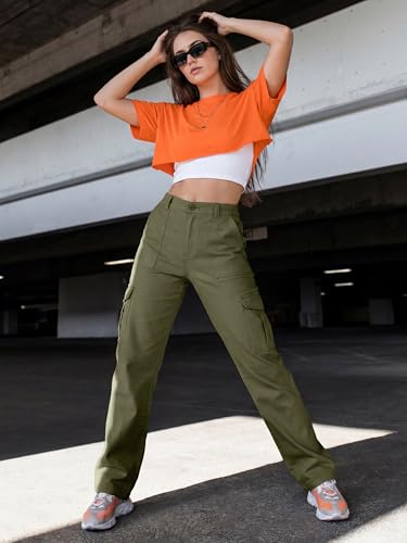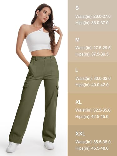 SEVEGO Extra Tall Woman 36 Inch Inseam Cargo Pants Combat Military Wide Leg Ladies Chino Trousers Y2K Clothes, Army Green, M