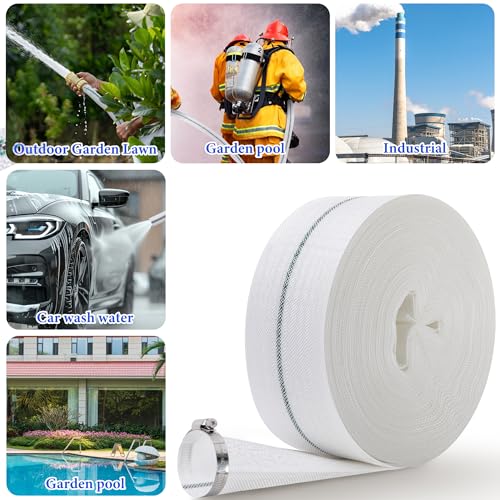 - Universal Pool Pump Specifications: The length of pool backwash hose about 60FT (18 Meters), and the inner diameter is 1.5IN. The pool drain hose is universally suitable for PVC pipe 1-1/2 inch.Hose can easily handle the job of backwashing and draining, Durable Material:Discharge hose is made of thickened PE and polyester material. The internally reinforced design features circular weave polyester. High wear resistant, extrusion resistant, tear resistant, and twist resistant. Essential pool supplies as pool drain hose, pool pump hose, pool filter waste hose, Versatile Applications: Suitable for all types of pool drainage, as well as farm irrigation, sewage filtration, wastewater drainage, mines, factories, and construction sites. Applicable scenarios: swimming pools, garden ponds, agricultural irrigation, buildings and other drainage areas, Attached 2 Clamps: We give you 2 clamps. Using clamps, the hose and filter ports can be connected tightly. After using, fold flat and easily roll up for storage. The flat design of the backwash hose saves space and does not take up space in your home, Durable and Easy to Store: Simply roll flat and place in a cool, dry location. Proper storage extends service life. For use, secure the clamp to the hose