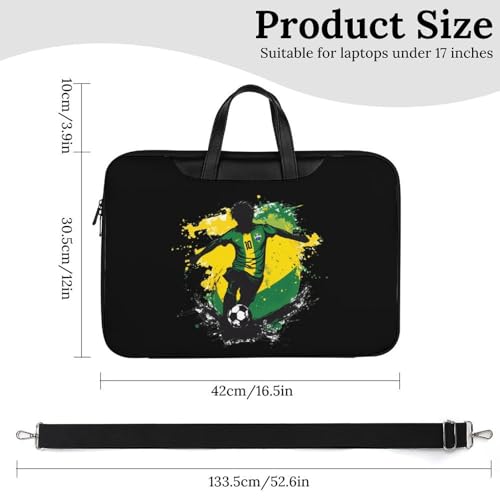 Brazil Flag Socer Player Football Laptop Tote Bag Leather Computer Bag Work Carrying Case Durable Handbag Briefcase, Black-style, 42x30.5cm