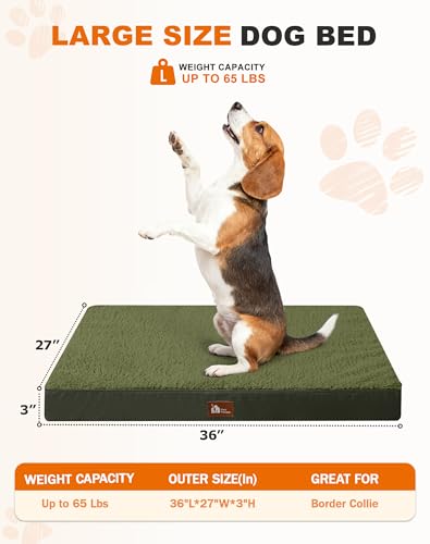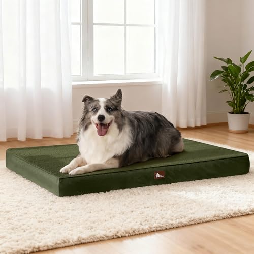 UPVILLA Waterproof Dog Bed Large-Orthopedic Support & Egg Crate Foam Dogs Mat, Soft & Cozy Dog Crate Pad with Non-Slip Bottom and Machine Washable Cover, Large Pet Mat Green