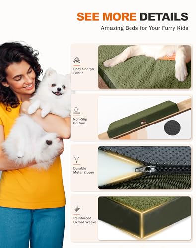 - [Orthopedic Support]: High density egg foam provide great support and comfort for dogs and cats, distributes weight evenly and reducing joint pain. Breathable and dissipates heat, reduce stuffiness, [Waterproof & Easy to Clean]: Waterproof lining prevents urine and saliva from penetrating & Removable durable and stain-resistant cover that makes deep cleaning a breeze, [Soft Sleep Surface]: Plush and cozy Sherpa fleece, provide our little friend with an irresistible softness and great sense of secured, allowing them to fall into a deep sleep faster, [Anti-Slip Design]: High-density PVC anti-slip dots can enhance the grip of the ground, pets play with the dog mat can be firmly affixed to the ground to avoid accidents, [Design for Pets]: The flat dog pad design provides plenty of sleeping space for pets. Easy to carry Suitable for a variety of scenarios, suitable for living room, outdoor, dog crate or car