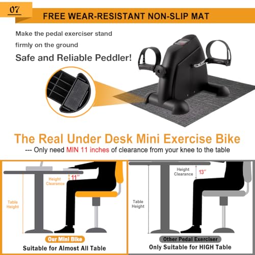 - 【HEAVY FLY WHEEL】Unlike ordinary plastic flywheels, this sitting pedal exerciser has a heavy metal flywheel to improve stability. Internal 5 lb steel flywheel makes it easy to use for long periods of time and can hold over 400 lbs, 【BEST MINI CIRCLE PEDAL EXERCISE】The GOREDI Level Up Fitness Cycle provides gentle low-impact exercise to the muscles, effectively stimulates and improves blood circulation, and is highly beneficial for leg and arm movement and recovery. Quiet and smooth pedal movements, you can use it in office or home without disturbing others, Multi-functional Display: Equipped with a multi-functional LCD display that tracks time, distance, count, total count, and calories burned. Large, easy-to-read display lets you easily track your workout progress or long press the red button to reset data, 【Adjustable Resistance】 The intensity level can be easily adjusted by turning the tension knob for customized exercises. Specially designed for seniors and rehabilitation people to perform physical therapy, relieve pain, recover and maintain sports function, 【Easy to Use and Store】Product Size: 13.7" x 15.7" x 11.6" Our portable pedal exerciser can be used for calling, playing games, watching videos, or syncing with your hand or feet at any time. Just place it under a table, beside the couch, or similar space to train your arms and legs, 【Safe and Stable】Non-slip rubber pads keep the fixed pedal exerciser in place even at maximum resistance levels without damaging the floor. The ergonomic non-slip surface of the pedals increases friction and safety. Adjustable 4-hole foot strap is flexible to adapt to different size feet
