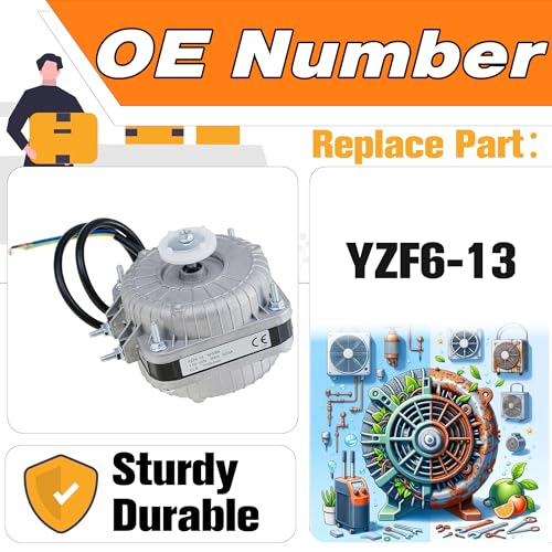 - 【Compatible With】:Suitable for small ventilation equipment, refrigeration equipment, radiators, and evaporators. Widely used in commercial refrigeration and freezing systems such as supermarkets and restaurants., 【Replace Part Number】:Direct replacement for YZF6-13 condenser fan motor, ensuring precise adaptation and reliable performance., 【High Quality】:Constructed with premium copper materials for high thermal conductivity, strong corrosion resistance, lightweight design, and extended service life. Certified for durability and efficiency in complex environments., 【Easy to Install】:Compact shaded pole motor design requires no drilling or welding. Supports both horizontal and vertical installation for quick and convenient setup., 【Purchase Description】:Before purchasing, ensure that the model, year, appearance and function are consistent with the original.If you receive any issues with the product, please contact us promptly and we will provide a perfect solution.