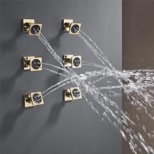 - Premium Material: The shower jets body sprays constructed from solid brass for durability and reliability, anti-scratch, guaranteed to last for years regardless of intensive use, Spa Experience: Our shower jet has a powerful and movable water flow, this unique design helps to thoroughly clean the body and provide a soothing massage. Allowing users to easily relieve body fatigue and experience a spa-like feeling, Adjustable Spray Face: Adjustable, 360 degree rotation,Up / down / left / right rotation direction to invigorate every inch of your skin for a fully massage, Easy-to-clean Nozzles: The shower body sprayer is equipped with soft silicone nozzles (spray holes), which can easily wipe away the accumulated calcium and lime. This is especially useful for hard water areas, After-Sale Service: If you have any questions during use, please feel free to contact us, we will reply to you within 24 hours and give you a satisfactory answer