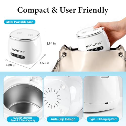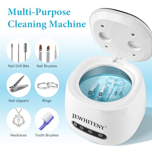 JEWHITENY 2 in 1 Rechargeable Nail Tool Cleaning Machine:3 Timers Mode for Nail Drill Bits,Automatic U V Light & 45k Hz Deep Cleaner,Nail Art Brush, Nail Clipper, Jewelry Cleaning, Salon & Home Use