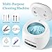- in-1 Nail Tool Cleaner: Cleans small items (drill bits, clippers, jewelry, glasses, dentures) in its inner cavity; top dual holes fit long tools (nail brushes/pens, toothbrushes). Features 3/6/10min selectable modes—choose based on your needs and tool dirtiness. Fast, efficient all-round cleaning for total convenience, 20000mAh Rechargeable & 120-Min Runtime: A full charge almost powers thorough cleaning of all nail tools, cordless design lets you change places at will, no repeated plugging/unplugging. Use flexibly at home (sofa, desk, bathroom, etc.) or travel—no bulky power accessories. Unlike corded cleaners that limit you to one spot, this cordless model pairs portability & practicality, ideal for nail lovers craving hassle-free cleaning at home and on the go, 45000Hz & U V Blue Light Deep Clean Mode :Ditch the hassle of manual scrubbing—this mode quickly and effectively removes the nail art tools dirt and grime from surfaces and intricate details, providing a deep and thorough clean. It penetrates hard-to-reach spots for a deep, clean finish that leaves your tools fresh and ready to use, whenever and wherever you need them, Safe Material & Large Capacity: Inner tank crafted from SUS304 stainless steel for safe & long-term use, easy cleaning, and lasting newness even after prolonged use. 6.76 oz (200ml) capacity enables full 360° cleaning of nail art tools. For optimal performance & safety, use clean water or mild detergent only. Note: Acetone is prohibited as it may melt and damage the device body, Compact Design & Easy Operation: Space-saving size slips right into your makeup bag or travel suitcase, perfect for nail lovers on the go. Simple operation: long-press the power button to turn on/off; press the power button once to switch between 3min/5min/10min modes. No tricky settings, just hassle-free cleaning whenever you need it