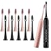 Electric Toothbrush 2 Pack - Electric Toothbrush for Adults with 12 Replacement Brush Heads, 2 Toothbrush Holders, 6 Modes (Black & Pink)
