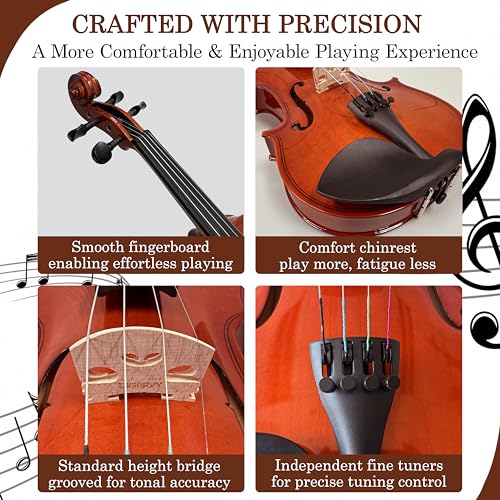 - 🎻 Carefully Handcrafted with Quality Materials: Expertly crafted with precision, the DIGERVY 4/4 violin features a laminated hardwood body with a spruce-veneer top and a flamed-veneer maple back, offering dependable structural strength and stable resonance. A solid maple neck pairs with a dyed rosewood fingerboard and chinrest to provide a smooth, comfortable playing feel, while the carbon-fiber tailpiece and ebony pegs ensure long-lasting durability and reliable tuning performance., 🎻 Stable, Balanced & Expressive Tone: Equipped with responsive alloy steel strings and thoughtfully selected tonewoods, the DIGERVY 4/4 violin produces a warm, balanced sound with clear highs, steady lows, and consistent tonal stability. The instrument responds smoothly across a wide dynamic range, supporting expressive playing for learners and developing musicians. A reliable choice for beginners and students who want pleasing sound quality and confident performance in every practice and recital., 🎻 Ready to Play Immediately: We know you can’t wait to start playing! That’s why every DIGERVY violin arrives with the bridge properly installed and the strings tuned close to standard pitch. Before your first play, simply apply rosin to the bow and make a quick final adjustment using any violin tuning app on your smartphone. With just a few easy steps, you’ll be ready to enjoy a smooth and stress-free playing experience from the very first note., 🎻 A More Comfortable & Enjoyable Playing Experience: The DIGERVY violin is designed to give beginners a smoother, more enjoyable playing experience. The bridge height and string spacing are professionally adjusted to make pressing the strings easier and more comfortable, reducing finger strain and helping beginners build confidence more quickly. Paired with carefully selected strings, the violin delivers a richer, sweeter tone with a soft and expressive sound. Whether you're a beginner or already have some experience, this violin helps you play with greater comfort and enjoy a better overall musical feel., 🎻 Complete Beginner Violin Kit: Violin Case, Bow, Rosin, Shoulder Rest, Fingerboard Stickers, Extra Strings, Cleaning Cloth & Instruction Manual Included – Everything You Need to Start Playing., 🎻 Worry-Free Support & Expert Assistance: If you encounter any issues while using your violin, our customer service team is always ready to help. We provide 24/7 professional after-sales support to ensure you receive timely and effective assistance.