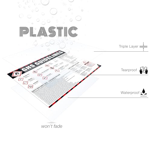 - OSHA GHS Guidelines Poster: This GHS safety poster provides a clear overview of OSHA Hazard Communication Standard requirements, including GHS pictograms, hazard classes, labeling, and SDS structure., Complete Hazard Classification Reference: Covers physical hazards, health hazards, and OSHA-specific hazard classes, helping improve chemical hazard recognition and workplace compliance., GHS Labels & SDS Explained: Includes label elements, signal words, hazard statements, precautionary statements, and all 16 required SDS sections for HazCom training., Industrial-Grade Material: Printed on Polypropylene Waterproof and Tear-Resistant material, suitable for chemical facilities, labs, factories, and warehouses., 18''x24'' Chemical Safety Chart: This GHS reference poster supports OSHA training, HazCom programs, and chemical safety awareness in professional workplaces.