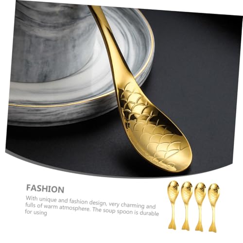 NAMOARLY 4 Pcs Metal Fish-Shaped Spoons Set, Medium Gold Cartoon Dessert and Soup Spoons for Dining Table