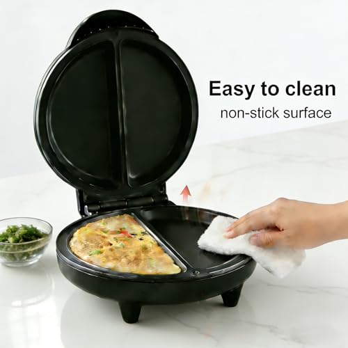 - Dual-Zone Cooking: This electric omelette maker features a dual-zone design for simultaneous preparation of two omelettes, saving time during busy mornings and streamlining breakfast routines efficiently, Rapid Heating Performance: With powerful 1000W double-sided heating, our nonstick omelette maker ensures quick, even cooking—ideal for fast and consistent omelettes or egg-based dishes, Effortless Cleanup: The food-grade non-stick coating prevents sticking, making cleanup simple and speedy for this electric omelet maker after every use, Safe Handling & Stability: Designed for reliability, it includes a cool-touch handle and anti-slip base, securing stable operation of this electric egg pans appliance during cooking, Compact & Versatile Use: Compact in size for easy storage, this nonstick electric omelette maker handles omelettes, frittatas, patties, and more—perfect for homes, dorms, or travel