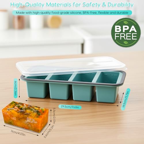 - 【Perfect Portion Control for Soups & More】Freeze soups, sauces, broth, smoothies, or cookie dough in silicone freezer tray’s 4 compartments (1000ml total). Perfect as soup freezer containers for meal prepping—portion control made simple with 125ml/4oz & 250ml/8oz markings on each silicone freezer mould, 【Premium Food-Grade Silicone, Safe & Durable】Crafted from 100% BPA-free platinum silicone, these soup freezer containers withstand -20℃ to 220℃ (not the lid).Suitable for refrigerators, microwave ovens, ovens and dishwasher. Reinforced alloy steel rim ensures sturdiness even when fully filled—no collapsing, no waste, just eco-friendly freezer containers built to last, replaces single-use plastics, 【Leakproof Silicone Lids, No More Mess】Say goodbye to cracked plastic lids! Our silicone freezer tray includes seal-tight silicone lids that lock in freshness, prevent leaks, and keep soup containers spill-free in the freezer or microwave. Fits snugly, stacks neatly, and eliminates confusion between compartments, 【Easy Release & Cleanup for Busy Kitchens】Pop out silicone freezer molds with a gentle push from the bottom—no sticking! The non-stick silicone freezer tray resists stains, oils, and odors. Dishwasher-safe, easy to clean, and ideal for ice cube tray-style soup portions (not for ice), 【Multi-Use & Space-Saving Organization】Transform your freezer with silicone freezer tray! Freeze soup containers for bone broth, sauces, or smoothies, then store in zipper bags. The silicone freezer moulds stack neatly, save space, and turn meal prep into a time-saving, zero-waste routine