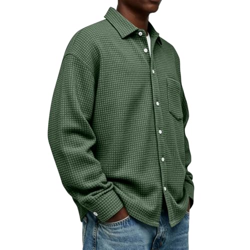 Long Sleeve Shirts for Men Solid Color Lapel Tops Long Sleeve Dress Shirt Work Button Down Blouses with Pocket(Army Green,3X-Large)