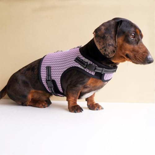 Mini Dachshund Harness Vest, No Pull & No Armpit Rub Dachshund Harness, Escape Proof Adjustable Dog Harness for Walking (Pink, S:(Chest 12"-16"))