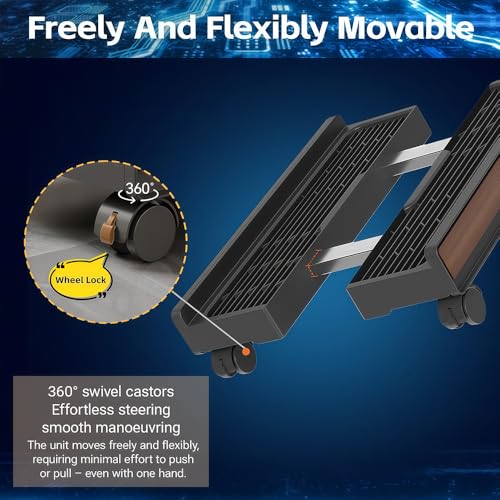 - 【Greater Load Bearing Capacity】Crafted from PP plastic, with a higher weight capacity of up to 110 lbs compared to other models on the market., 【Adjustable Width】Our computer stand is adjustable in width, the adjustable width range is 9.8-12.6 inches and the length is 17.7 inches, which can support most computer towers on the market., 【Ventilation and Heat Dissipation】The perforated design at the bottom of the computer tower stand keeps your computer tower at a sufficient distance from the floor to speed up heat dissipation., 【Easy to Move】CPU holder is equipped with four 360° swivel universal wheels, not only on the floor, but also on the desktop, and the wheels are equipped with fixed locks to fix the movement of the wheels, making it more practical., 【Make Your Life Simple】Perfect for any surface even on floor carpet. If you needed something that could raise your gaming PC to keep it away from the floor or rug and to be able to easily move it, this is it!