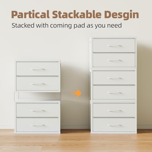 KitMent 2-Packs Stackable Storage Drawers, 20.8''Wide Closet Organizers, 16'' High Storage Fabric 2 Drawers Dresser for Bedroom Clothes, White