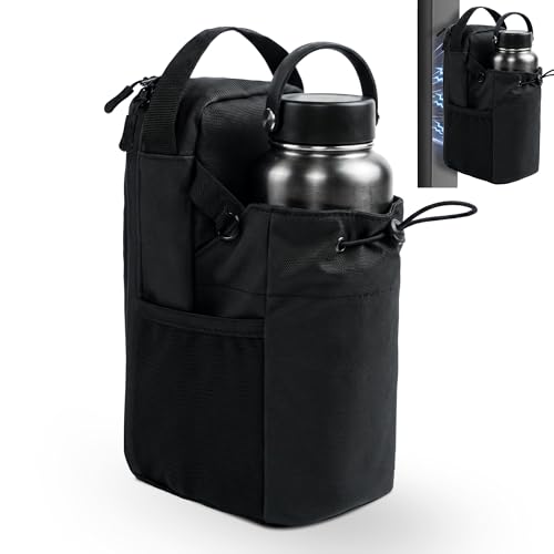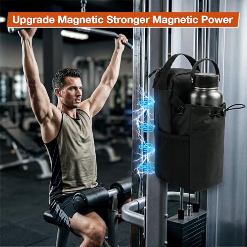 - đ§˛ăPowerful Magnetic DesignăThe 4 powerful-Upgraded magnets layout enhances magnetic strength on the back of water bottle carrier with strap,providing a larger magnetic area. Magnetic gym bag securely attaches to all metal equipment without slipping or detaching. Keep your essentials within easy reach while you exercise.(NOTE: WATER BOTTLE ISN'T INCLUDED.), đăExtra-large Capacity ă The water bottle holder measures 27.5 x 6cm.The Magnetic gym water bottle bag accommodates bottles up to 13cm diameter, fitting most water bottle sizes from 10oz to 50oz.Includes an additional storage compartment for essentials like wallets, earbud and keys. Enough room to carry everything you needâno more leaving keys and phones on dirty floors., đ§ăWaterproof Gym BagăMade from premium PU waterproof material, Magnetic gym bags for men/women offers complete protection against moisture. Unlike normal gym bags that let sweat seep through, our waterproof design magnetic gym water bottle bag seals out rain, sweat, and spills. Even the zipper area is specially treated to prevent water from getting in. Toss in your wet towel after a intense workoutâeverything inside stays dry., đ§ăHandheld & CrossbodyăGym magnetic bag offers both handheld and crossbody for chooes. Handheld bag at the gym, or sling it over your shoulder for outings or hiking. When you're outdoors, it's sometimes hard to get your hands free to hold your water bottle, so you can use the padded shoulder strap to crossbody your water bottle.Stylish sppearance is perfect for both men and women to incorporate into their everyday outfits., đ¤ăVersatile Usageă You can use this water bottle carrier with shoulder strap as a small backpack. Whether you are working out, hiking, climbing, walking, hiking, running errands, walking the dog, and even yard work or participating in sports activities, it can help you store your water bottle and important items.Magnetic gym bag meets the needs of most occasions and makes an great gift for gym enthusiasts.
