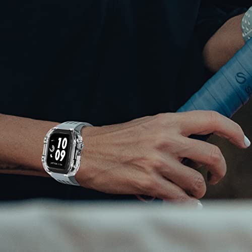 - 【Scope of application】Modification kit transparent case, silicone strap, this strap modification kit is only suitable for 8 7 6 5 4 SE 45mm/44mm Series Watch, please make sure your watch is genuine before upgrading, fluorine rubber The strap is soft and comfortable., 【Adjustable Size】Adjustable size fits most wrists. The strap fits most wrists, no need to worry that this strap won't fit your small or big wrist. Strap with adjustable loop allows you to adjust the strap length to fit your wrist., 【Suitable for Different Clothes and Occasions】The strap bezel replacements are available in a variety of colors, which can be perfectly matched with different types of clothing. Suitable for parties, business meetings, celebrations, proms, anniversaries, graduations, ceremonies, greetings, banquets, weddings and other important public occasions, or you like sports, hiking, camping, horseback riding, driving or other outdoor sports., 【Gift Box】Our packaging box is very beautiful. You can surprise your lover, family and best friends. It's also a beautiful and cool gift that will bring you tons of compliments., 【Note】Watch pictures are for display only. We only sell cases and straps, not inner watches. Package includes: case, strap, upgrade tool and spare screws.