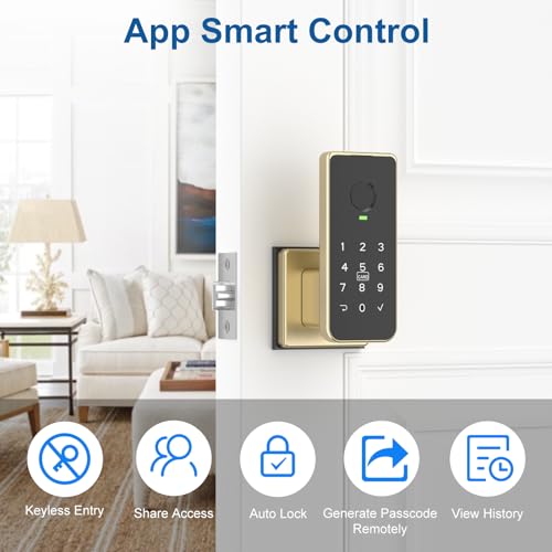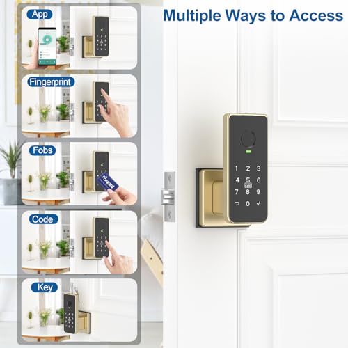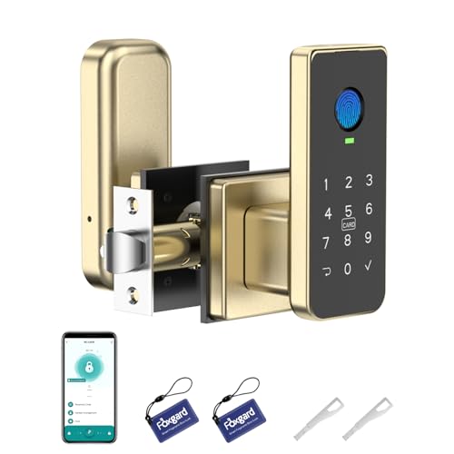 - 【5-in-1 Biometric Smart Door Lock】:This fingerprint door lock gold combines 5 unlocking methods: fingerprint, keypad code, app, IC card, and mechanical key. For added convenience, pair it with the Foxgard Gateway (sold separately) to enable remote access and voice control—making it the ideal smart door lock for bedroom, home, or office., 【App Control with One-Time, Timed & Dynamic Passcodes】:Easily manage your keypad fingerprint lock from your phone. Generate one-time or timed codes for guests, cleaners, or Airbnb tenants. The app lets you monitor access logs and control your thumbprint door lock., 【Auto-Lock, Anti-Peep Code & Secure Keypad Entry】:Enjoy auto-lock and delayed lock features for peace of mind. The backlit keypad door lock also features anti-peep technology, letting you enter random digits around your passcode to protect your privacy—perfect for a code door lock for bedroom., 【Fingerprint Security & Indoor Privacy Lock】:Activate the built-in electronic anti-lock for added privacy inside for common user only. Whether used as a fingerprint door knob or biometric door handle, it prevents entry even with valid credentials—ideal for bedrooms, offices, or rentals., 【Easy Installation & Long-Lasting Performance】:This indoor fingerprint door lock gold fits most standard doors and can be installed in minutes with just a screwdriver—no drilling or wiring needed. Powered by 4 AA alkaline batteries (not included), it offers long battery life and low-battery alerts, making it a dependable electric fingerprint door lock for any home or office.