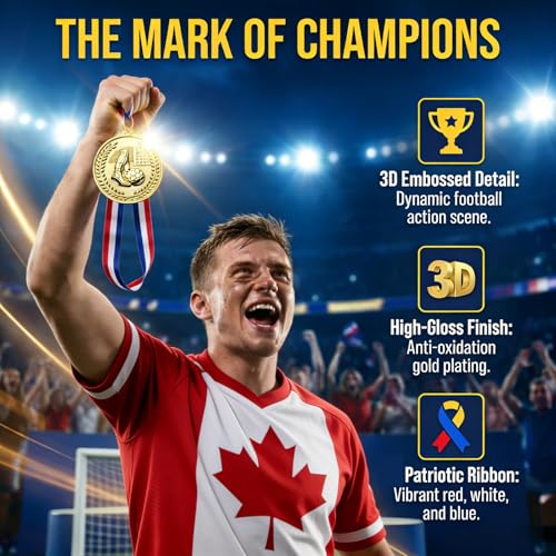 - 【Professional Recognition for Athletes】: Tournament organizers often struggle with flimsy plastic rewards that lack a sense of achievement. Our heavy-duty zinc alloy soccer medals provide a professional weight and premium feel, ensuring every young athlete feels the true honor of their hard work during championships or school leagues, 【Exquisite 3D Embossed Craftsmanship】: Avoid the disappointment of flat, cheap-looking prizes. These medals feature detailed 3D embossed designs of a soccer ball and goal on a brilliant gold surface. The high-quality zinc alloy ensures the medals remain shiny and rust-free, making them a lasting souvenir of a glorious season, 【Boost Team Spirit & Motivation】: In the heat of competition, a tangible reward is the ultimate driver for performance. These gold medals serve as a powerful psychological incentive, fostering a sense of belonging and pride among teammates. Perfect for motivating players to excel in every match and training session, 【Versatile Sports Event Coverage】: From community football festivals and summer training camps to corporate friendly matches and soccer-themed graduation ceremonies, these awards adapt to any scenario. They are the ideal choice for MVP awards, participation prizes, or commemorative gifts for soccer enthusiasts, 【Complete Award Set & Premium Support】: This value pack includes 12 individual soccer gold medals, each pre-attached to a 15.75-inch vibrant nylon neck ribbon with a secure metal clip. We provide dedicated post-purchase support to ensure your event planning goes smoothly. (Package Includes: 12 x Zinc Alloy Medals, 12 x Red-White-Blue Ribbons)
