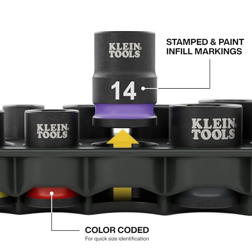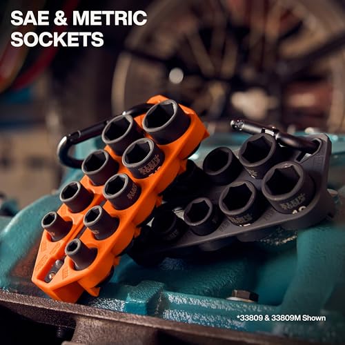 Klein Tools 33809M Grab-and-Go Impact Socket Set, Metric, 10-Piece Set with Sleeve, Carabiner, 3/8-Inch Drive, Color-Coded 8 mm, 10 mm, 12 mm, 13 mm, 14 mm, 15 mm, 17 mm, 18 mm, 19 mm Sockets