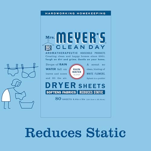 - Dryer sheets reduce static and add freshness to your clothes, Dryer sheets soften fabrics and are made from thoughtfully chosen ingredients, Rain Water dryer sheets has a fragrance so clean. Drops of Rain Water fall on leaves and noses and fill the air., Contains thoughtfully chosen ingredients. Made without parabens and phthalates, Mrs. Meyer's products are made with cruelty-free formulas and are Leaping Bunny certified.