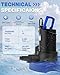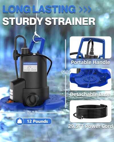 - Powerful Performance water pumps: This 1 HP pool cover pump delivers 3500 GPH (twice the speed of standard pumps!) with a rugged 300W motor for rapid water removal. Its submersible water pump design handles 1/6-inch solids, perfect for clean or slightly dirty water in pools, ponds, or flooded basements. Max head of 36 feet ensures quiet, high-efficiency operation, Smart Automatic On/Off Technology: The automatic pool cover pump activates at 5/8” water level and shuts off after draining to 1/3”, running an extra 20 seconds for complete dryness. Bottom suction removes water down to 1mm – ideal for flat surfaces! Automatic on/off prevents dry burns, making it worry-free for winter use, Unmatched Safety: Built-in smart temperature controller triggers automatic shutdown at 221°F to prevent overheating. Even after thermal overload, it restarts once cooled. Perfect for unattended operation as a sump pump or pond pump – safe for basements, pools, and gardens