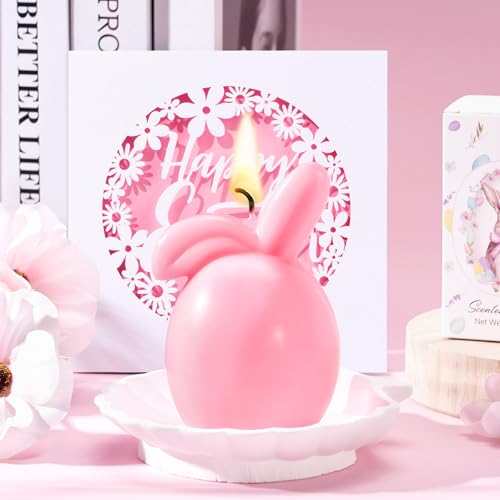 Frerdui Easter Basket Stuffers for Women & Teen Girls, Prefilled Easter Gifts Basket for Women & Teen Girls with Bunny Glass Cup, Scented Candle, Bunny Gift Set for Mom, Wife, Sister, Friends, Pink