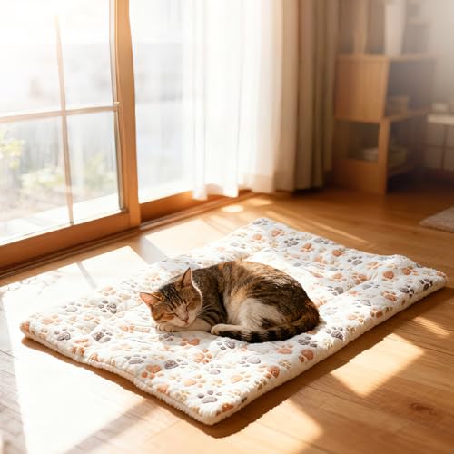 - ✅ [ Keep Your Cat Warm & Cozy ] This pet bed for dogs and cats is filled with high-quality flannel and cotton, offering a luxuriously soft, flat, and safe surface. Lightweight and breathable with a gentle touch, it boasts excellent heat retention and resistance to deformation. The dense pile and fade-resistant print ensure it’s low-maintenance, non-shedding, and long-lasting. Help your furry friend stay snug and comfortable during autumn and winter, trapping warmth for cozy rest in cooler environments, and show them how much you care., ✅ [ Ideal for Cats & Small Animals ] Available in two sizes: 86×58cm (33.86×22.83in) / 67×48cm (26.38×18.90in), this cat mat is perfect for small to medium dogs and cats of all breeds and sizes. It provides a cozy retreat for your pet, with a versatile design that works beautifully at home, in pet crates, carriers, or any spot your furry friend loves to unwind., ✅ [Practical & Beautifully Designed ] This cat bed blends aesthetic appeal with practical functionality, ensuring your pet feels secure and snug all year round. Its versatile design extends its usability, so you can simply place it wherever your pet prefers., ✅ [ Easy to Clean & Built to Last ] This mat is not only durable but also crafted from stain-resistant material, making it machine-washable for hassle-free care. Whether it’s on the floor, sofa, or in a pet crate, it delivers all-around warmth and comfort. You can even take it on trips, hikes, or picnics, keeping it fresh and clean during outdoor adventures to provide a hygienic resting place for your pet., ✅48 × 67 cm (19 × 26 Inches) — Perfectly Fits Cats and Small to Medium-Sized Dogs with Ample Comfort