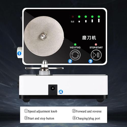 - 【Reliable Performance】This electric knife sharpener features a portable design powered by a robust 2600mAh battery. It is compact, operates smoothly, supports both forward and reverse rotations, and offers a fast grinding speed along with an extended service life., 【Customizable Speed Settings】With adjustable speed options.You can tailor the sharpening experience to meet your unique needs. Whether you require a quick refresh or a detailed sharpening, this feature guarantees optimal results with every use., 【Efficient and Labor-Saving】Designed for efficiency, this sharpener boasts a high-speed grinding wheel with a remarkable 5000r/min performance. It's simple to operate, saving both time and effort in your sharpening tasks., 【Chargeable】Equipped with a convenient visual battery indicator, you can easily monitor the remaining power of the sharpener. It can be used 800 times on a single charge., 【Versatile Application】This electric knife sharpener is ideal for a variety of cutting tools, including slicing knives, bone knives, carving knives, fruit knives, scissors, kitchen knives, sword knives, tungsten steel rods, and more.