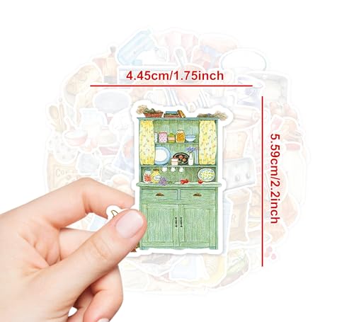 - Kitchen & Baking Aesthetic:This baking sticker pack showcases bread, cookies, muffins, cheese, honey, eggs, rolling pins, mixing bowls, ovens, whisks, and classic cookware illustrations. Designed to create a cozy kitchen and bakery aesthetic, these food stickers add warmth to laptops, journals, planners, and creative projects., 50 Unique Designs, No Duplicates: Each pack includes 50 different cooking stickers with no repeated designs, sized approximately 2–3.5 inches. Suitable for scrapbook food stickers, collage layouts, recipe notebooks, planners, and bullet journals, making them ideal stickers for journaling and DIY decoration., Waterproof Vinyl, Clean Peel, Long-Lasting: Crafted from durable waterproof vinyl (PVC), these kitchen aesthetic stickers are water-resistant and suitable for daily use. Designed for smooth, flat surfaces such as tumblers and laptops, with clean removal and no sticky residue. Ideal as laptop stickers and water bottle stickers for adults and teens., Gift-Ready for Bakers & Food Lovers: A practical and creative gift option for baking lovers, home cooks, pastry fans, and food illustration enthusiasts. Suitable for birthday gifts, stocking stuffers, party favors, classroom rewards, and creative craft kits with a cozy kitchen theme., Wide Application for DIY & Daily Decor: These cooking and baking stickers are suitable for laptops, water bottles, tumblers, notebooks, scrapbooks, planners, phone cases, recipe binders, kitchen journals, and gift wrapping. Well-suited for kitchen-themed moodboards, personalized accessories, handmade cards, and scrapbook spreads.