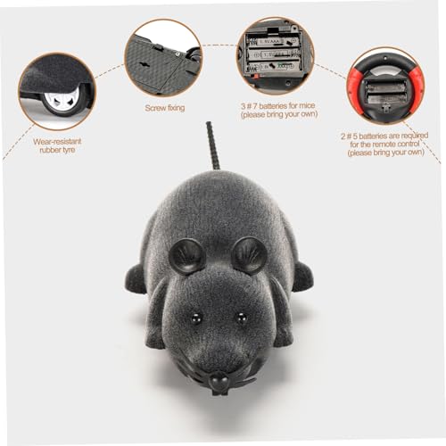 - Interactive Play: This remote control mouse cat toy is designed for interactive play, allowing you to control the movements of the mouse and engage your cat in playtime. It is a great way to play with your cat and provide them with exercise and stimulation., Battery-Powered: This remote control mouse cat toy is battery-powered, making it easy to use and convenient. It is a great toy for indoor cats, providing them with entertainment and exercise without the need for outdoor space., 4 Channel Remote Control: This remote control mouse cat toy comes with a 4 channel remote control, allowing you to control the movements of the mouse from a distance. It is easy to use and provides a fun and engaging experience for both you and your cat., Great Idea: This remote control mouse cat toy makes a great idea for cat owners. It is a thoughtful and practical present that shows your love and care for their furry friend. It is also a fun and creative way to provide their cat with entertainment and stimulation., Realistic Design: This remote control mouse cat toy features a realistic design with a flocked body and a tail, making it look and feel like a real mouse. It is a fun and interactive toy that will keep your cat entertained for hours.