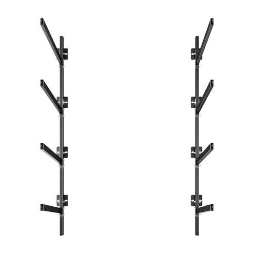 - 4-Kayak Storage: This wall-mounted kayak storage rack holds 4 kayaks, canoes, or SUP boards in a clean, organized layout. It opens up valuable floor space and allows flexible width adjustment, letting you install the rack exactly where you need it, Adjustable Height: The arms on this kayak stand rack adjust through multiple preset mounting holes to fit different kayak shapes and sizes. Each arm provides stable, pressure-free support without squeezing or stressing the hull, Heavy-Duty Stability: Built from carbon steel and rated to hold 300 lbs, our kayak stand features a welded structure, thick frame, and upward-angled arms for rock-solid stability. Its rust-resistant coating withstands coastal humidity and outdoor exposure, Scratch & Slip Protection: Each arm on the canoe storage rack features rubber padding that helps reduce scratches and dents. The built-in anchor point allows secure tie-downs, keeping your kayaks from slipping or falling during storage, Wide Application: Place this kayak rack in garages, boathouses, docks, rental shops, or along exterior walls. It helps save storage space while keeping your area clean, tidy, and organized