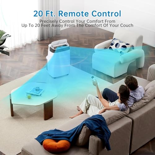 - 【Durable & Space-Saving Construction】Built with a tough ABS shell for long-lasting wear resistance and safe operation, this portable air conditioner fits effortlessly into most windows and compact spaces. It boasts an intuitive LED touch panel for easy control, an integrated carry handle for hassle-free room-to-room relocation, and a washable air filter that traps dust and allergens—maintaining peak performance and cleaner indoor air with minimal maintenance., 【Powerful Cooling & Energy-Efficient Operation】Equipped with a 925W high-performance compressor, this AC unit rapidly cools spaces up to 450 sq.ft and features a 61-pint/day dehumidification capacity to eliminate sticky humidity, turning muggy air into fresh, crisp comfort. Despite its strong cooling power, it operates in an energy-saving way, keeping your space cool without driving up utility costs—perfect for hot summers and damp monsoon seasons., 【3-in-1 Versatile Functionality】Effortlessly switch between three practical modes to adapt to any weather or comfort demand. Cooling mode delivers instant relief during heatwaves, Dehumidify mode reduces excess moisture for a fresher environment, and Fan mode circulates air without cooling. This all-in-one design seamlessly adapts to changing climates, ensuring year-round comfort at the touch of a button., 【Complete Window Installation Kit for Enhanced Airflow】The included full window installation kit enables efficient indoor-outdoor air exchange, boosting the unit’s cooling efficiency while promoting fresh air circulation. This smart design not only optimizes overall performance but also dynamically regulates indoor temperature and humidity levels, creating a healthier and more comfortable living or working space., 【Whisper-Quiet Performance for Uninterrupted Comfort】Running at less than 54dB—quieter than a normal conversation—this portable air conditioner won’t disturb your sleep, work, or relaxation. Its lightweight, portable build makes it an ideal cooling solution for bedrooms, offices, and living areas, delivering powerful cooling performance without distracting noise.