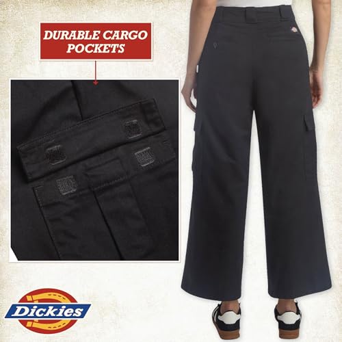 Dickies Womens Wide Leg Cargo Pants - Regular Fit High Waisted Cropped Length Casual Pants for Women Fashion Utility Workwear, Stonewashed Black, 8