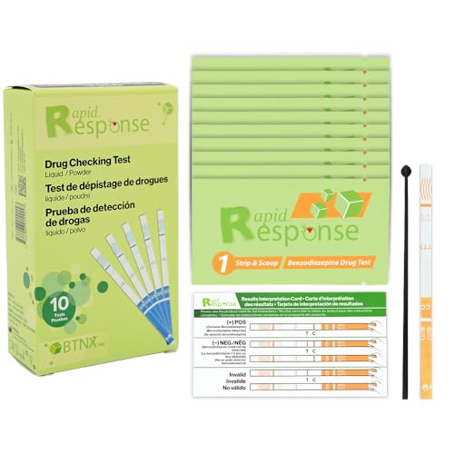 Rapid Response® Benzodiazepine Test Strip – For Liquid and Powder Substances, Quick Results in Minutes, Easy To Use, High Sensitivity - 10 Tests
