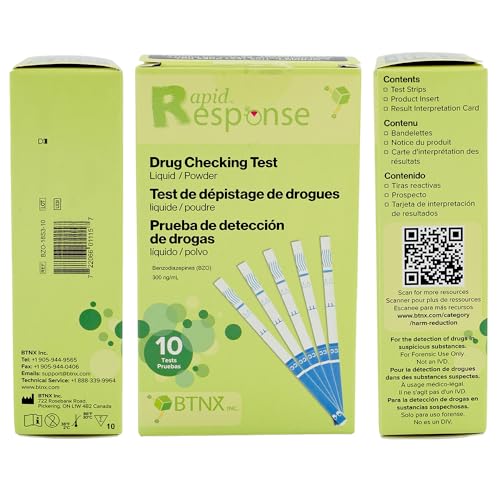 - WARNING: THIS TEST DOES NOT EVALUATE DRUG SAFETY OR PURITY., HARM REDUCTION: A solution designed for personal harm reduction and overdose awareness., FAST RESULTS: Read results in just 60 seconds., DISCREET & COMPACT: Each strip is individually sealed in a foil pouch for hygienic, safe, and portable use., CONVENIENT: Each test strip pouch includes microscoops for easy testing and a QR code printed for quick access additional guides and resources., TRUSTED BRAND: Rapid Response by BTNX is a Canadian Company, recognized globally for reliable rapid test products.