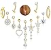 - 【Belly Button Ring Set】 Includes 11pcs trendy 14K gold Plated belly button rings: 2pcs clicker reverse curved belly rings, 2pcs floating belly button rings, 3pcs short belly piercing designs with heart CZ, and 4pcs 14K gold Plated dangle belly button rings like butterfly, flower, heart, and long chain. Boasting a 14K gold Plated belly ring and sparkling cubic zirconia, this set offers diverse styles to upgrade your body jewelry collection, 【Hypoallergenic Surgical Steel】These belly button rings are crafted from 316L surgical steel and brilliant AAA+ cubic zirconia. belly rings are hypoallergenic,non lead and non nickel. They are gentle on sensitive skin and ideal for those with hypoallergenic needs. The highly polished, smooth surface ensures comfortable insertion and wear while preventing scratches to the navel piercing. The non tarnish finish keeps them sturdy and shiny every day, making them a reliable choice, 【Belly Button Piercing Jewelry Size】These belly button rings feature a standard 14G (1.6 mm) bar thickness and 10 mm barbell length, and suit most navel piercing types and preferences. Dangle lengths range from 20mm to 50mm,across styles like hoops, hearts, and butterflies. The threaded design enables easy screwing on and off, ensuring a secure, slip-free fit for all day comfort. It suits all belly piercing needs, 【Meticulously Designed】These 14K gold Plated belly button piercing jewelry blend elegance and glamour in each piece. Perfect for daily wear, beach vacations, bikini looks, or nights out on the town, these designs effortlessly complement your outfits, making you shine with confidence at every occasion,whether you prefer a subtle shimmer or bold dangling charm, 【Ideal Belly Jewelry Present】This 11-piece 14K gold Plated belly button ring set is a thoughtful present for women. It's perfect for summer vacations, birthdays, Valentine’s Day, Christmas, beach parties, and nightclub gatherings. The versatile and cubic zirconia designs showcase elegant jewelry, letting you share the sparkle with loved ones. This set is ideal for present as belly piercing jewelry