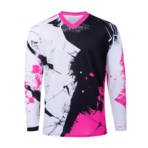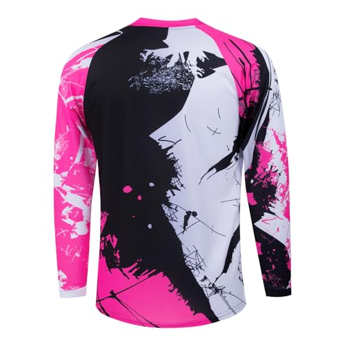 Men's Cycling Jersey Long Sleeve MTB T Shirt Mountain Bike Motorcycle Bicycle Clothing, Cu9023-ro, Large