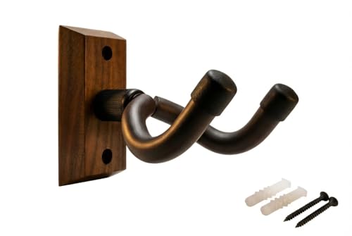- Sturdy Wood Guitar Hanger: Solid black walnut base, strong metal frame, soft padded sleeve, the best guitar mount for your great guitar., Non-Slip Guitar Wall Mount: With deep V-shape design, this guitar wall mount can prefectly prevents your guitar from slipping off and keep it safely store., Rotatable Guitar Hook: The yoke is rotatable to fit various headstocks, whether it's a folk guitar, electric guitar, bass, ukulele, mandolin or banjo., Details Can't be Ignored: Different screws and anchors are included for different walls, such as drywall, bricks wall and wood wall, make sure the guitar wall hanger is prefectly fit for your need., More than Guitar Holder: Good choice for hanging home stuff to save space due to it's natural looking and strong quality also for music studio, office, or rehearsal space.