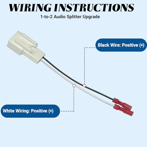 - Y-Splitter Design: This wiring harness adapter features a Y-shaped connection configuration, allowing you to expand a single original car speaker interface into a dual output without cutting any wires. This lets you easily add a subwoofer or additional rear speakers without cutting or splicing into your vehicle's original wiring., Quality Assurance: Made with upgraded high-quality wire cores and high-temperature resistant silicone insulation, these adapters are IP67 waterproof certified and tested in extreme environments from -40℃ to 105℃, ensuring lossless signal transmission and long-lasting durability. It's an excellent subwoofer wiring harness modification accessory., Plug and Play: The kit includes 4 gold-plated terminal adapters for secure connections. Installation is incredibly simple: unplug the factory speaker connector, plug in this adapter, and then connect your new audio equipment. No cutting, soldering, or special tools are required., Compatibility: This subwoofer cable conversion plug is compatible with Scion 1987-2013, Mitsubishi Galant (with manual climate control) 2007-2012, Mitsubishi Galant (with automatic climate control) 2007-2012, Mitsubishi Galant (with manual climate control) 2004-2006, Mitsubishi Galant (with automatic climate control) 2004-2006, Mitsubishi Lancer 2008-2012, and Subaru BRZ 2013., Reliable Upgrade: Upon purchase, you will receive 4 car audio conversion plug adapters. These harnesses are manufactured to factory specifications, ensuring reliable and secure connections. The product has undergone multiple tests to guarantee its quality, making it an ideal choice for DIY car audio enthusiasts.
